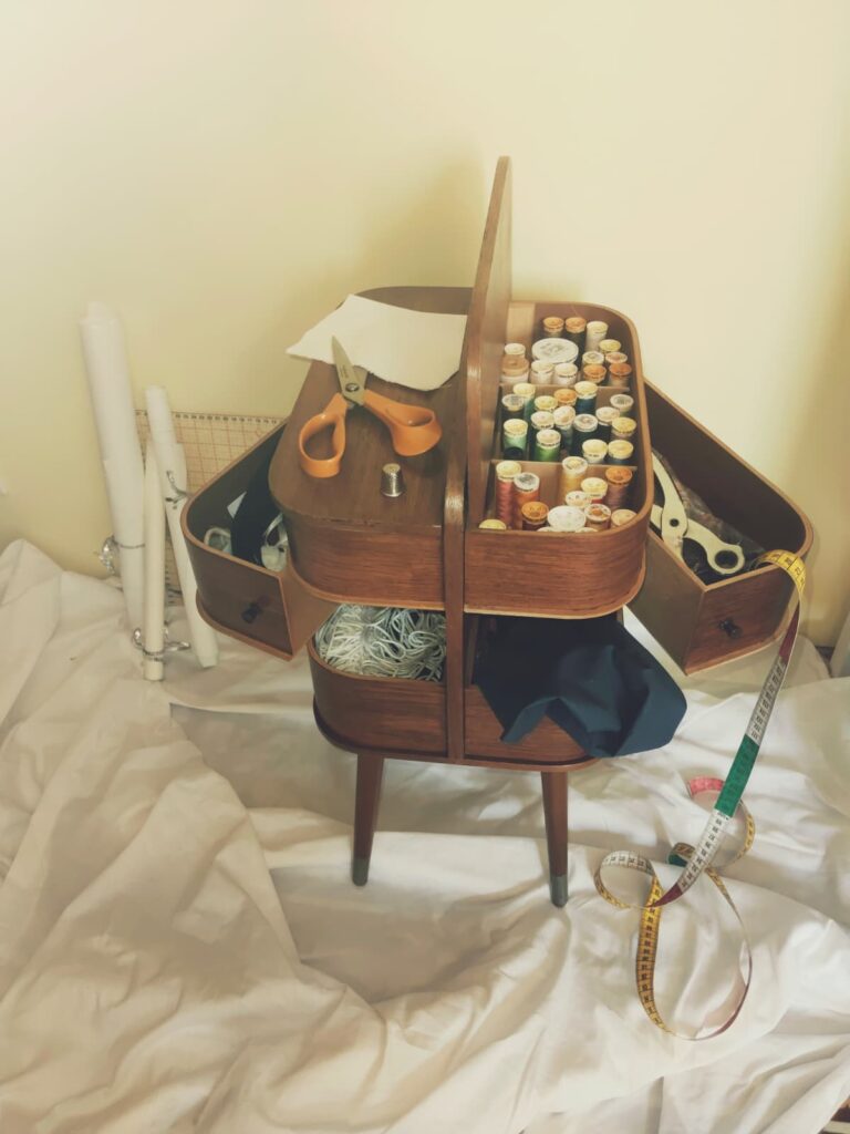 Derrière mes créations ne se cache pas seulement une machine à coudre. Beaucoup de matériel et d’étapes sont nécessaires pour arriver à bout d’un projet. Découvrez les coulisses de mon atelier : du tissu jusqu’au choix du prix en passant par les mesures et la découpe.